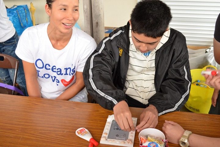 貝殻を使ったフォトフレームづくり。海の思い出と一緒に持ち帰ってもらいます。