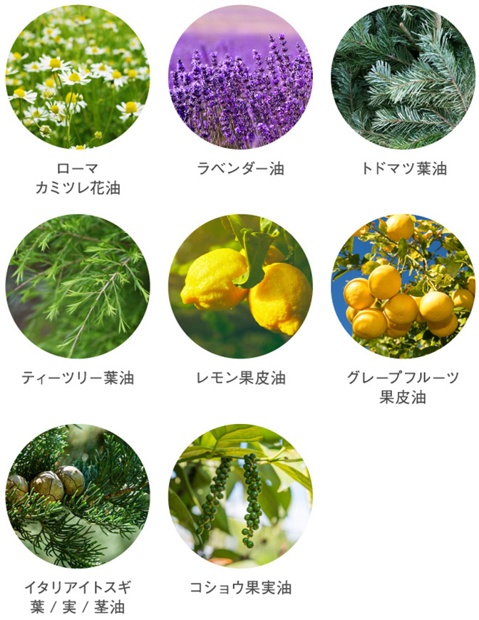 北海道産モミ(トドマツ)やローマカミツレ花油、サイプレスやブラックペッパーなど、8種のハーブやスパイスをブレンドしたスッキリと爽やかな香りをお楽しみいただけます。
